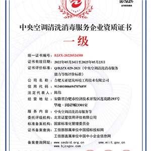 中央空调清洗消毒服务企业资质证书